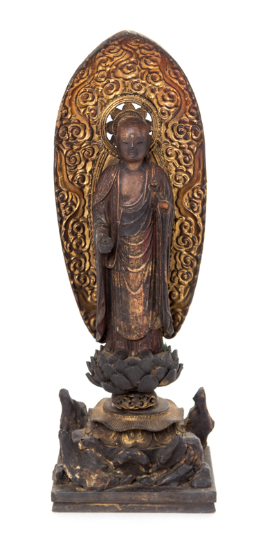 A Japanese Gilt Decorated Wood Figure of Buddha