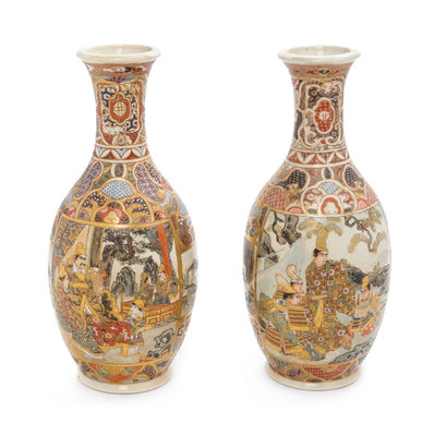A Pair of Japanese Satsuma Bottle Vases