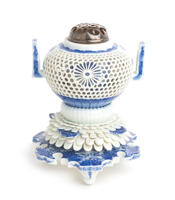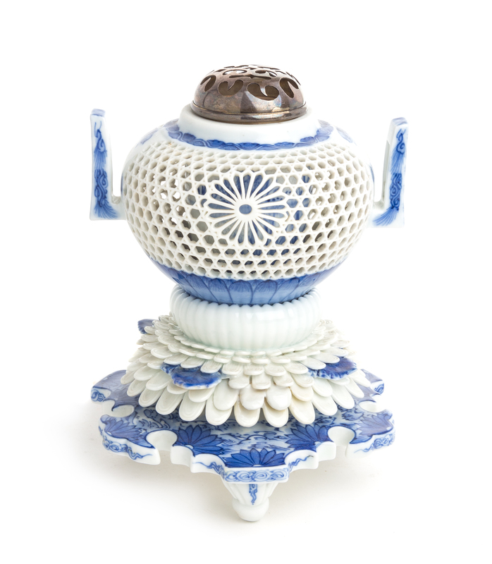 A Japanese Blue and White Porcelain Reticulated Incense Burner, Hirado
