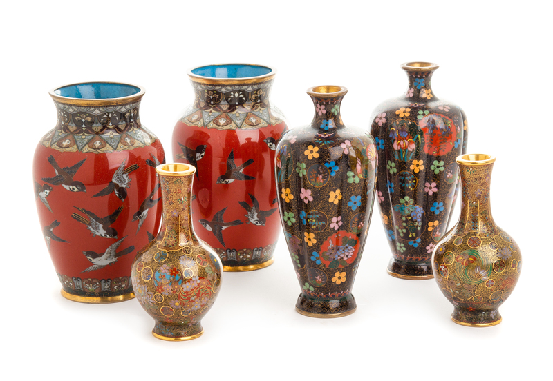 Three Pairs of Japanese Cloisonne Enamel Vases