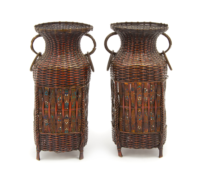 A Pair of Japanese Mixed Metal Vases