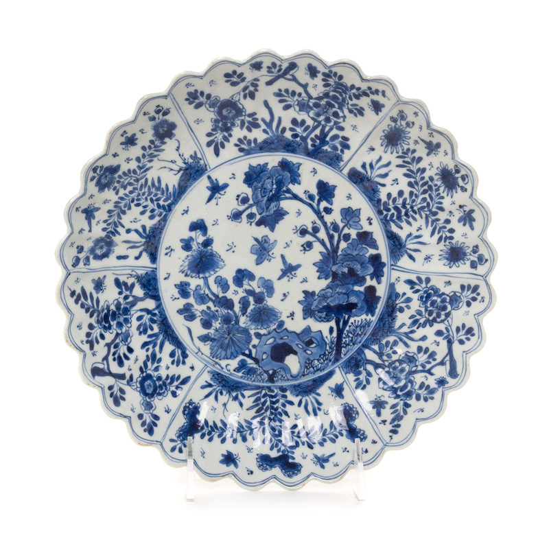 A Chinese Export Blue and White Porcelain Chrysanthemum-Form Dish