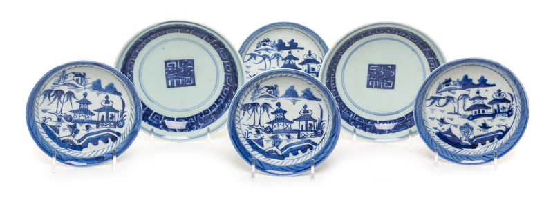 Six Chinese Export Blue and White Porcelain Plates