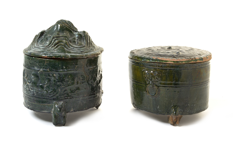 Two Chinese Green Glazed Pottery Hill Jars, Lian