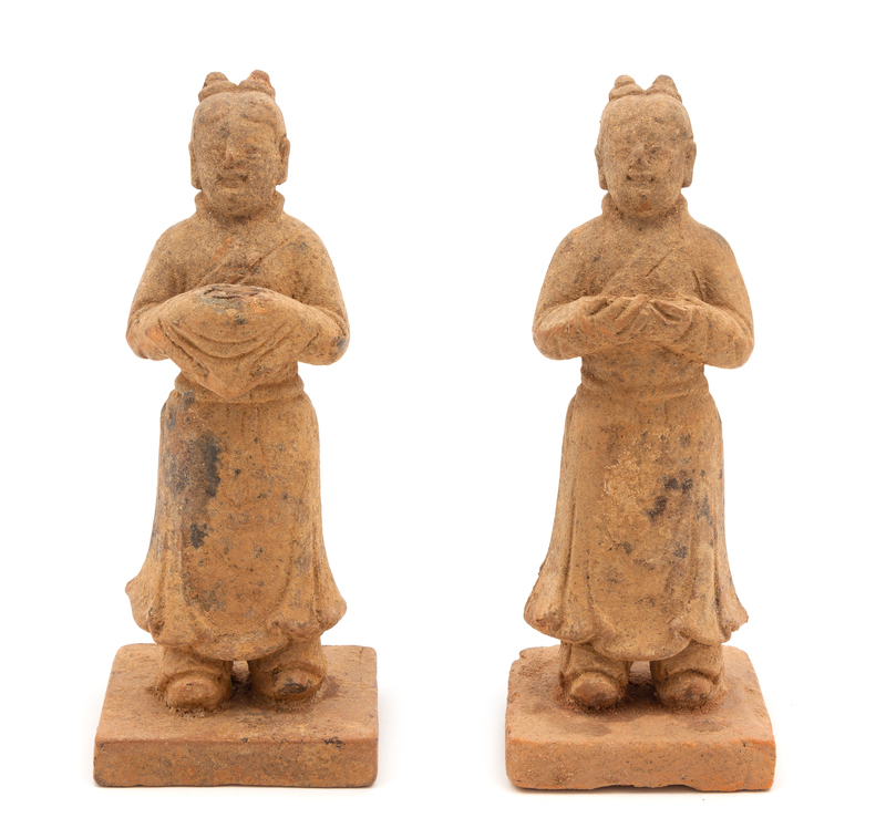 A Pair of Chinese Pottery Figures of Males