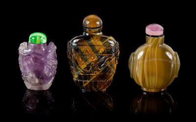 Three Chinese Carved Hardstone Snuff Bottles