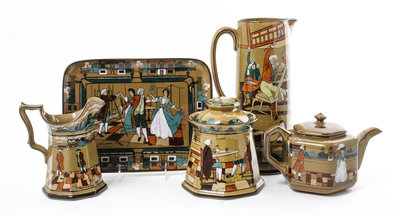A Deldare Pottery Five Piece Set Height of tallest 12 1/4 inches.
