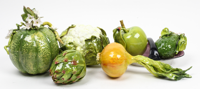 A Collection of Ceramic Vegetables Length of onion 9 3/4 inches.