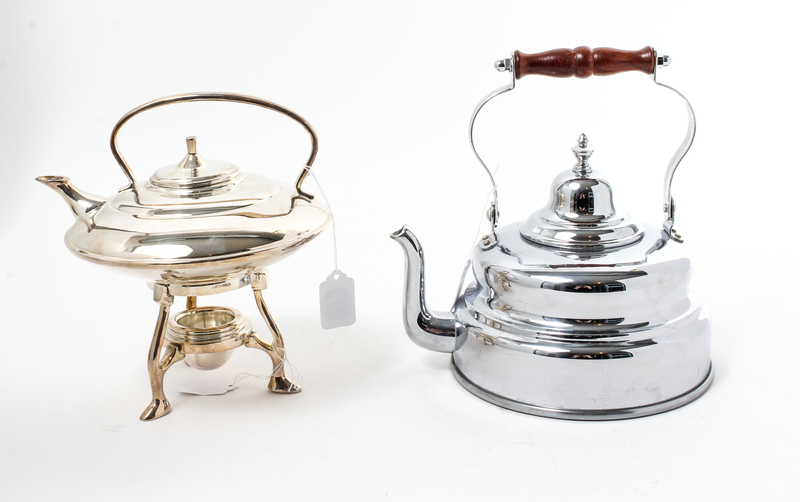 Two Stainless Steel Tea Kettles Height of taller 9 3/4 inches.