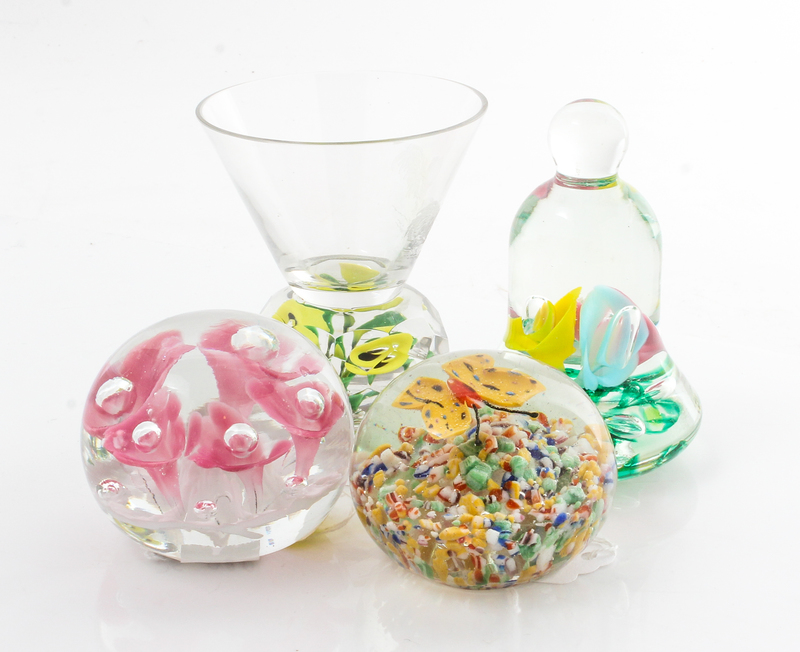comprising two Joseph St. Clair examples, a Czechoslovakian goblet, and a Chinese butterfly weight