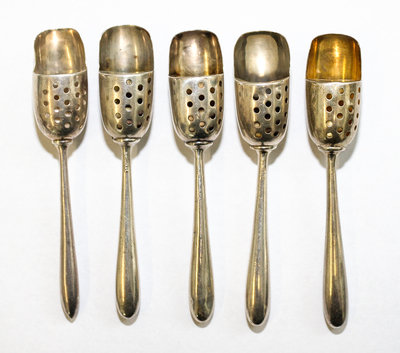 A Collection of American Silver and Silver-Plate Salt Sifter Spoons, various makers, each having a shovel bowl with a perforated panel