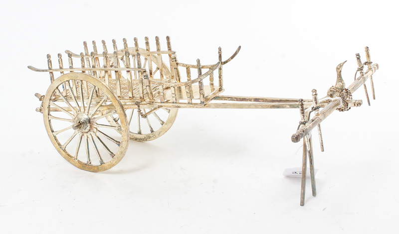 A Silvered Metal Model of an Ox Cart, ,