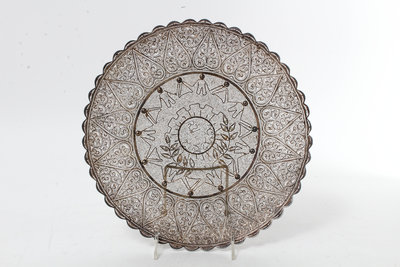 A Silvered Metal Filigree Tray, , of circular form. with a fitted box.