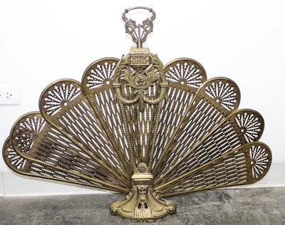 A Victorian Brass Fan Form Fire Screen Height 27 inches.