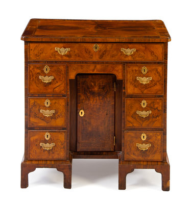 A George II Style Kneehole Desk Height 30 1/4 x width 29 3/4 x depth 18 1/4 inches.
