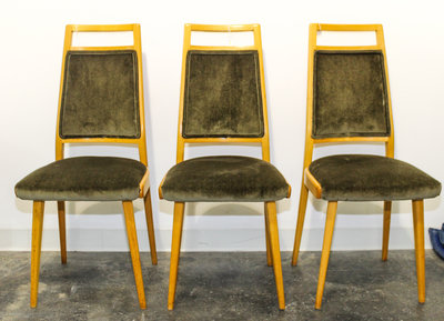 A Set of Three Olive Velvet Upholstered Chairs Height 37 1/2 inches.