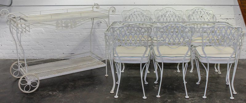 in the Florentine pattern, comprising a dining table, a bar cart and six side chairs, each marked.