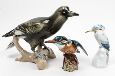 Three Continental Porcelain Ornithological Figures Height of tallest 8 1/2 inches.