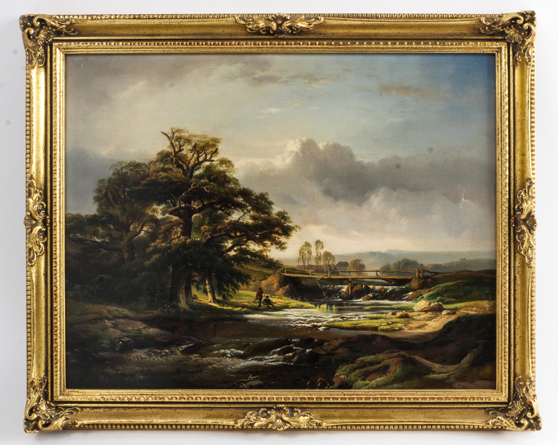 Joseph Quinaux, (Belgian, 1822-1895), Fishermen along a Stream