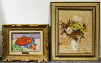 Alexander Beattie, (British, early 20th century), Still Life with Bowl of Fruit, together with another still life of flowers.