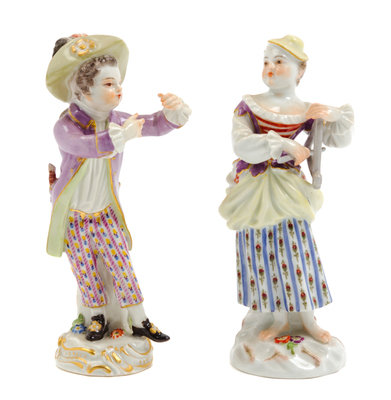 Two Meissen Porcelain Figures Height 5 1/8 inches.