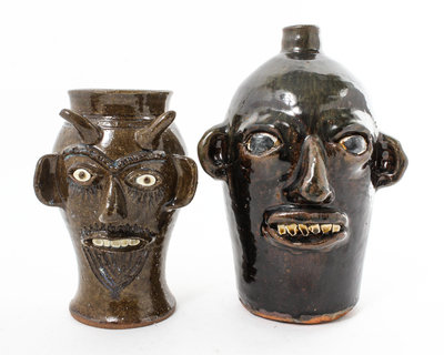 Charles Lisk, (American, 20th century), Don't Let the Devil Get You, together with another pottery jug, Herbert Hoover by Grace Hewell.