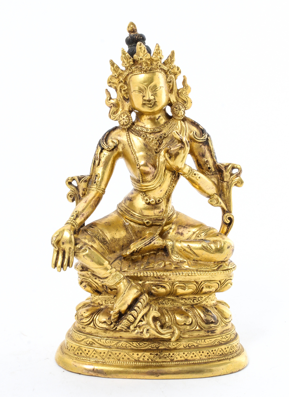 A Chinese Gilt Bronze Figure Height 6 1/4 inches.