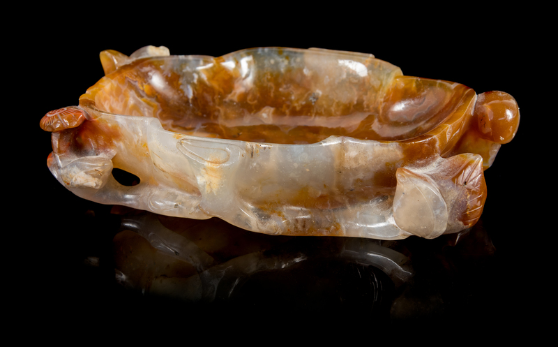 A Carved Agate Brush Washer Length 5 inches.