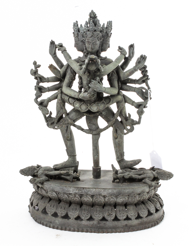 A Nepalese Cast Metal Figural Group Height 12 inches.