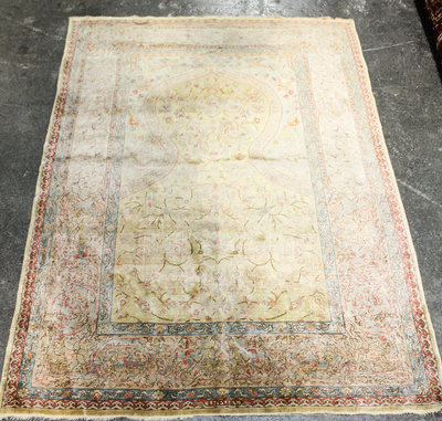 A Persian Silk Prayer Rug 5 feet 4 inches x 3 feet 8 inches.