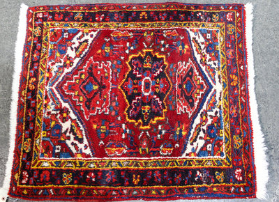 A Persian Wool Mat 2 feet 10 inches x 2 feet 6 inches.