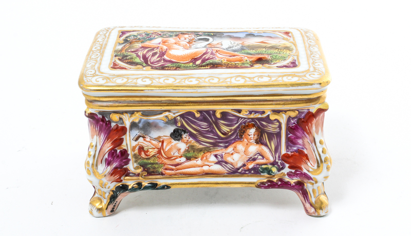 A Capodimonte Porcelain Box Width 4 1/2 inches.