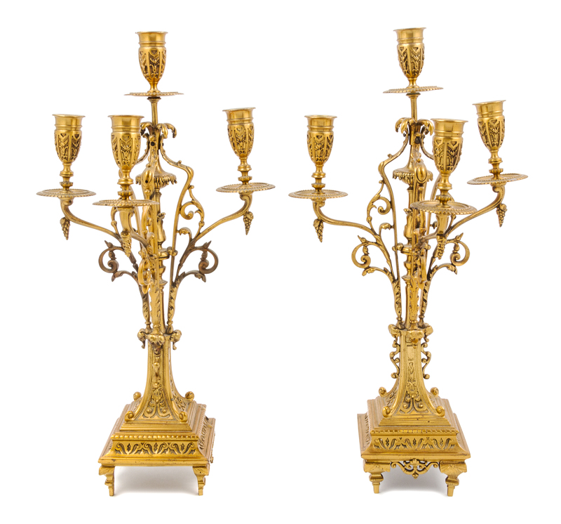 A Pair of Continental Gilt Metal Four-Light Candelabra Height 19 1/2 inches.