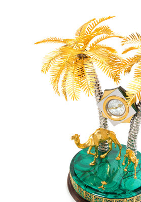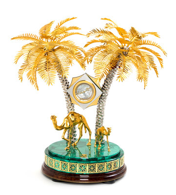 A Gilt Metal and Malachite Veneered Clock Height 18 1/2 inches.