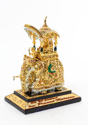 An Indian Gilt Decorated Composite Model of an Elephant Height overall 8 inches.