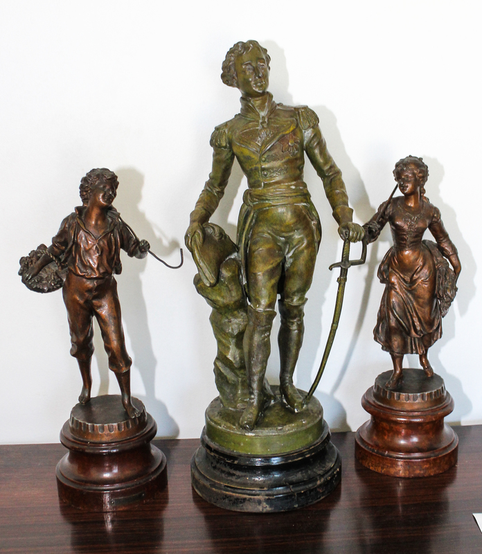 Three French Cast Metal Figures Height of tallest 17 1/2 inches.