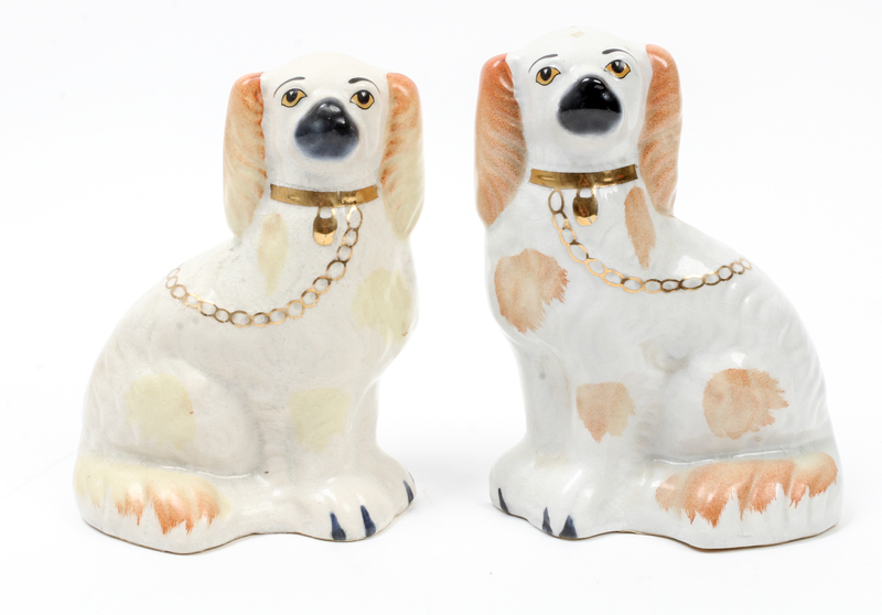 A Pair of Staffordshire Spaniels Height 7 3/4 inches.