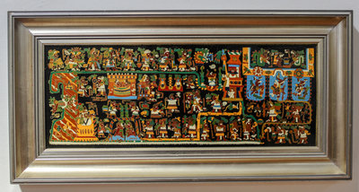 A Mexican Enameled Metal Plaque Height 8 x width 20 inches.