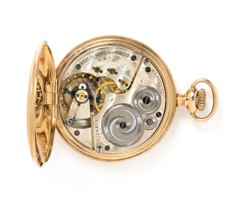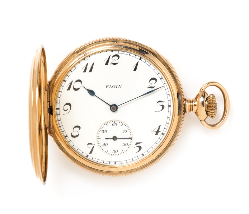 A 14 Karat Yellow Gold Hunter Case Pocket Watch, Elgin, Circa 1922,