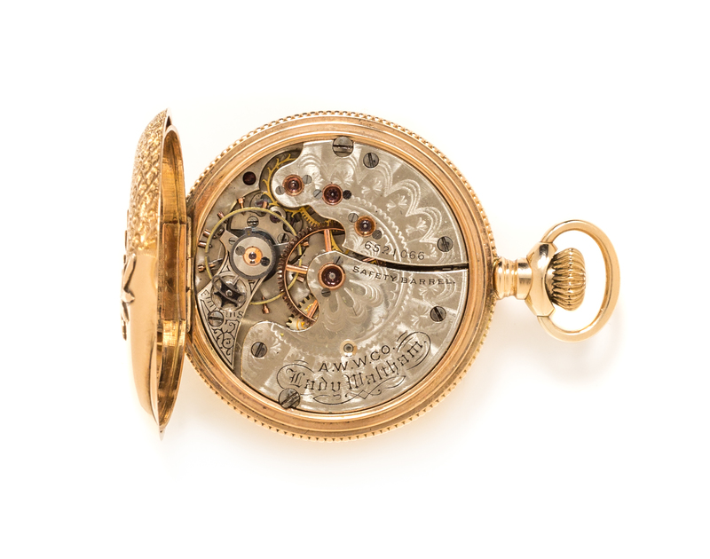 A 14 Karat Yellow Gold Hunter Case Pocket Watch, Waltham for Traub Bros. & Co., Circa 1900,
