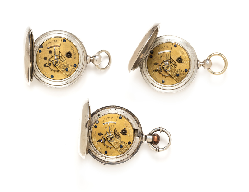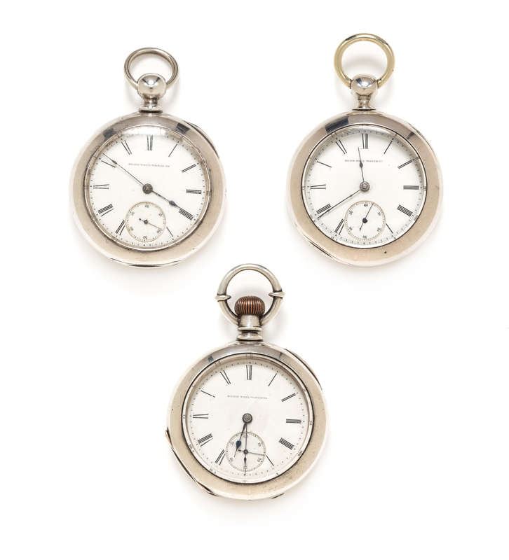 A Collection of Coin Silver Open Face Pocket Watches, Elgin, Circa 1882 and 1883,