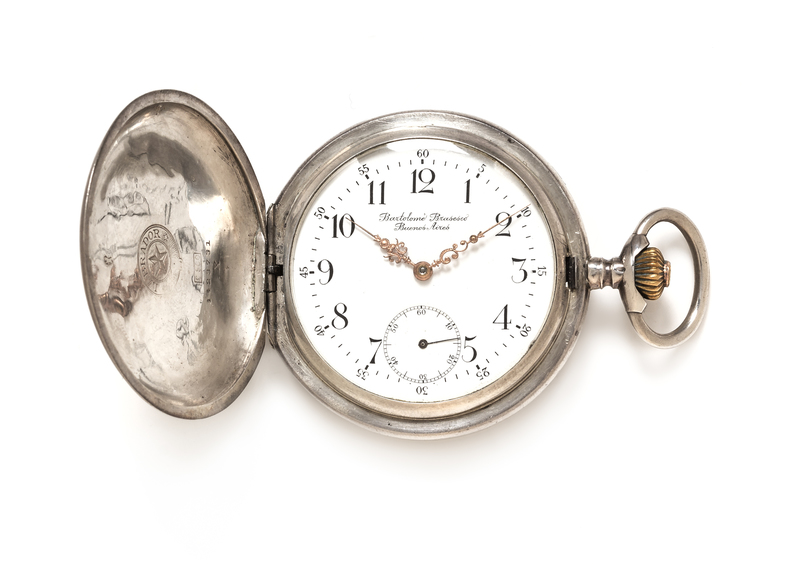 52.00 mm case diameter, white single-sunk dial signed Bartolome Brasesco Buenos Aires, Arabic numerals with outer chapter ring calibrated to 60 units, gilt Louis XV hands, subdial for seconds at 6 o'clock, cuvette engraved "LABRADOR FABRICADO EXPRESAMENTE PARA Baratolime Brasesco Buenes Aires", engine turned case with black cartouche, stem wound and set gilt movement signed Labrador.