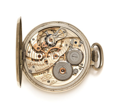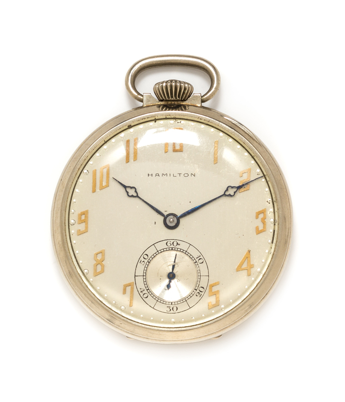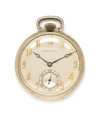 A White Gold Filled Open Face Pocket Watch, Hamilton, Circa 1930,