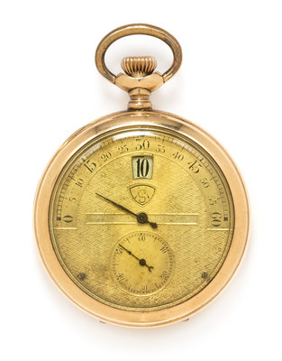A Gold Filled Jump Hour Retrograde Open Face Pocket Watch, Modernista,