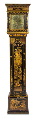 A George II Black-Japanned and Parcel-Gilt Longcase Clock