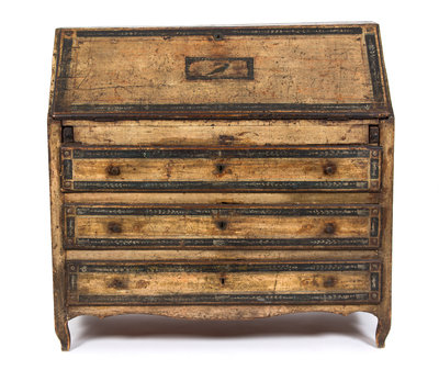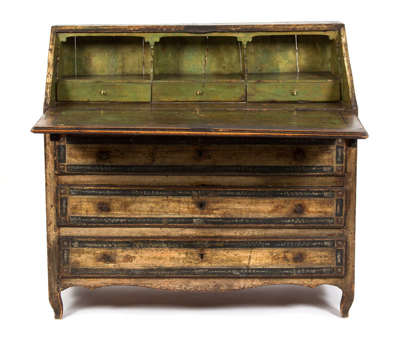 the interior having fitted three drawers and cubbyholes; over three long drawers.