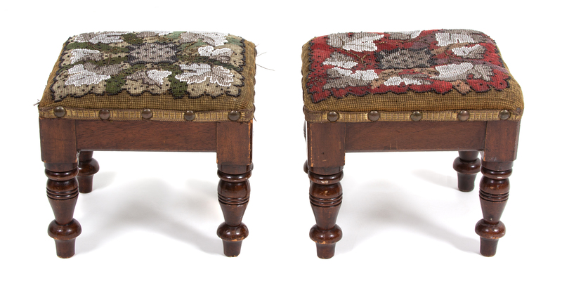 A Pair of Victorian Embroidered and Beaded Footstools