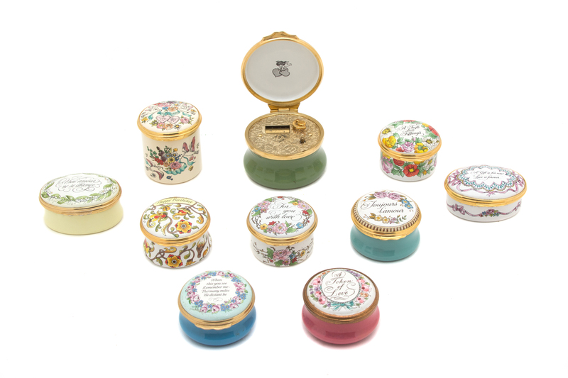 A Collection of Ten Enameled Pill Boxes