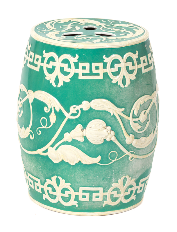 An English Green and Ivory Glazed Ceramic Garden Seat