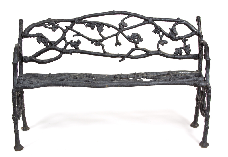 A Painted Iron Garden Bench and Matching Chair